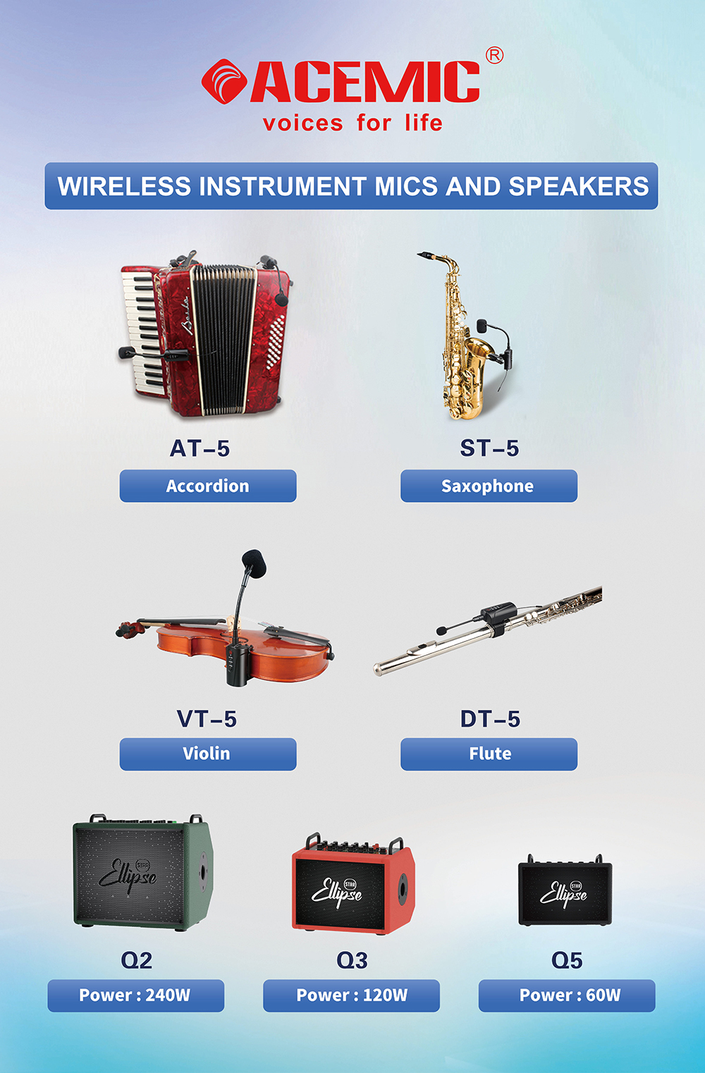 Experience rich, detailed sound with the AceSound Q3, a 120W music speaker system designed to elevate your performance. Whether you're a guitarist, keyboardist, or multi-instrumentalist, this compact yet powerful music speaker system delivers exceptional clarity and responsiveness for every note you play.
